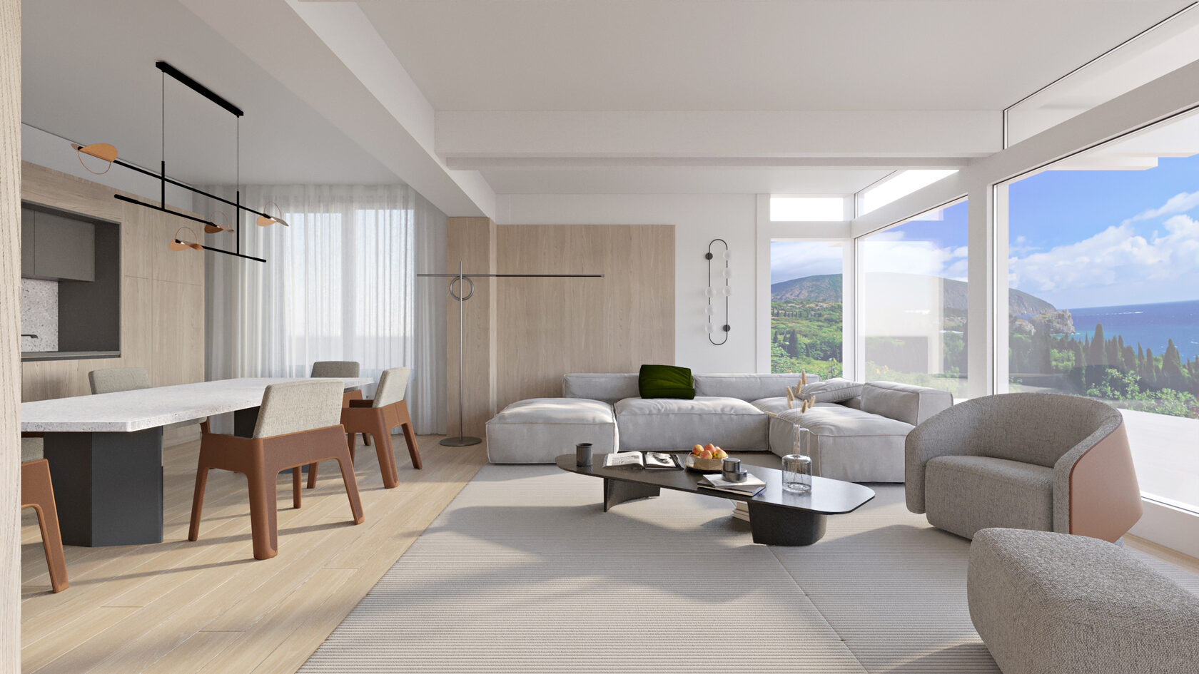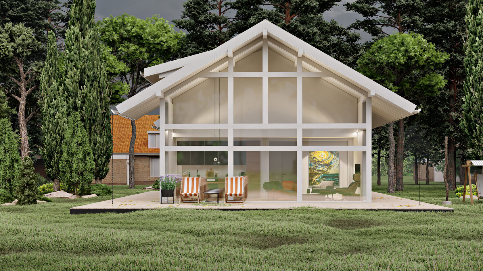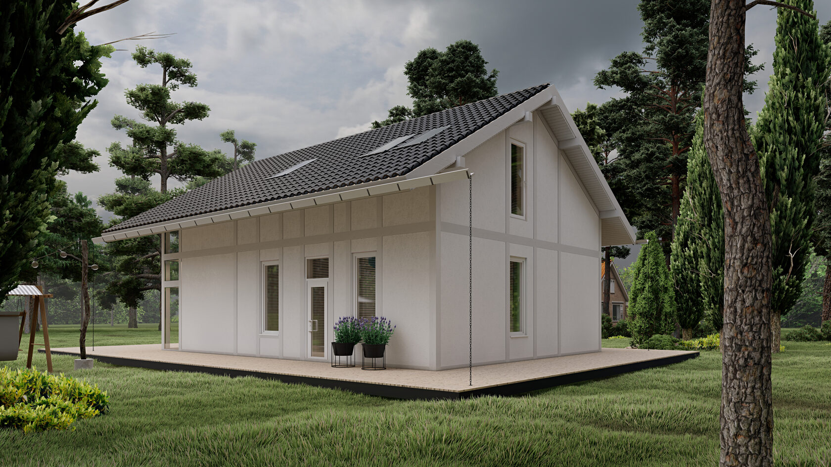 Двухэтажный уютный дом увеличенной площади спроектирован для тех кто ценит комфорт и личное пространство. В доме присутствуют элементы люкс-недвижимости: панорамное остекление, второй свет - отсутствует перекрытие гостиной и кухонный зоны между первым и вторым этажом, что делает пространство просторным и наполненным светом. Это открытость, свобода и максимально возможное включение окружающей природы как жизненного пространства.