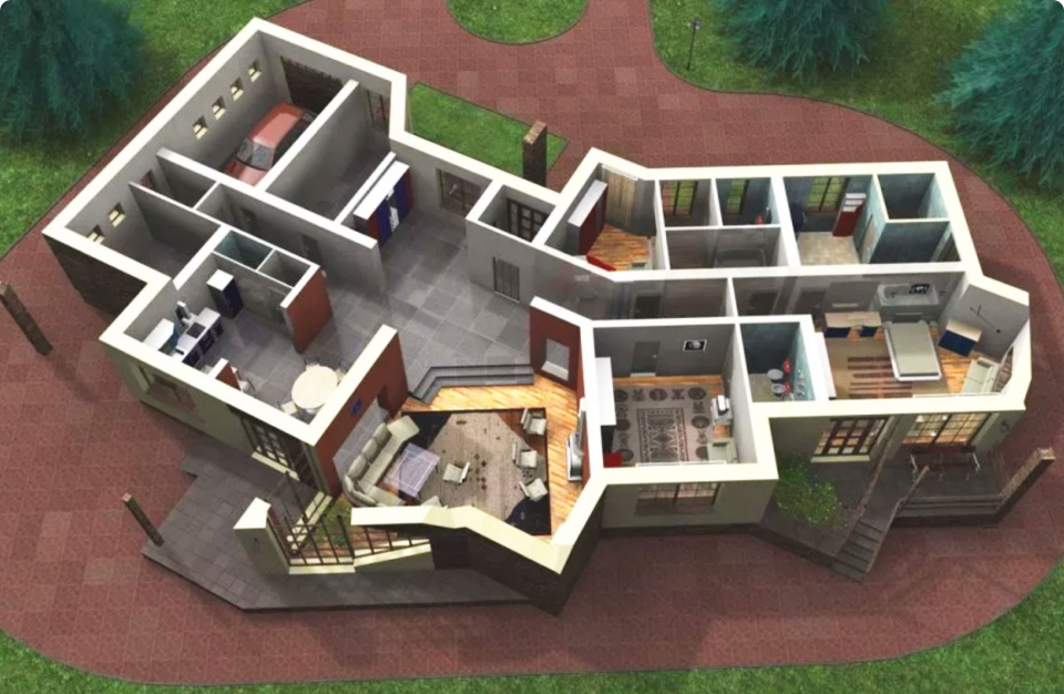 Классический одноэтажный дом увеличенной площади подойдёт тем кто ценит безопасность своих детей и родителей. В этом доме нет лестниц, поэтому не нужно дополнительно задумываться о безопасности — никто не упадет и не поскользнется. Кроме того, Вас не будет беспокоить посторонний шум и топот наверху.